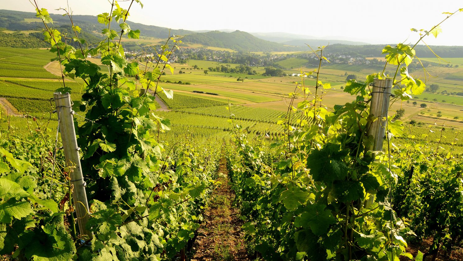 Vi börjar i Tyskland, där den populära druvan Spätburgunder – tyskarnas namn på Pinot Noir – finns i våra viner Hofmann Spätburgunder Trocken-Barrique och Willems-Willems Saars Spätburgunder Blanc de Noir Trocken. Båda kommer från Jürgen och Caroline Hofmanns vinproduktion i Appenheim, nära Mainz, där de i vacker miljö (bild ovan) håller till.