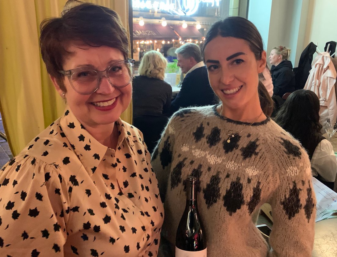 – Jag är så lycklig för att få vara här, att få visa upp vad jag och min familj har, inleder Costanza, sedan Vinfolkets Catarina Palo (bilden ovan, med Costanza till höger) lämnat över mikrofonen till kvällens huvudrollsinnehavare. Allra först blir det Novello, fortsätter hon, alltså ”det nya vinet”, från årets druvor och som tillverkas enkom för att drickas under ett fåtal veckor. Det är alltså inget vin det sparas på...