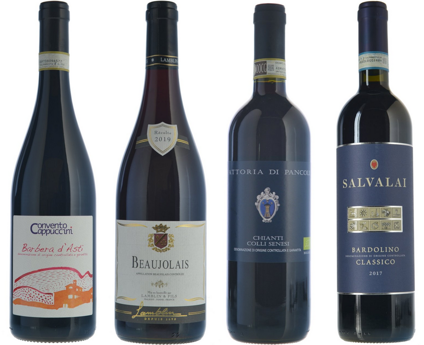 I paketet ingår från Italien; Salvalai Bardolino DOC Classico, Fattoria di Pancole Chianti och Convento Cappuccini Barbera D´Asti, och från Frankrike – Lamblin Fils Beaujolais. Fyra viner som vår sommelier Catarina Palo rekommenderar varmt när den egenplockade – eller för den delen egenköpta ... – svampen ska inmundigas. Fast ska sanningen fram passar de till en hel del annat också ...
